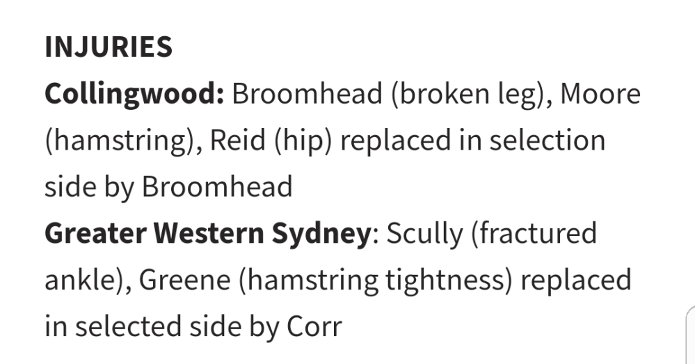 The Broomhead incident wasn’t fun to watch and it seemed to have a Koschitzke feel about it, being that his awareness was lacking. The ball was well over already and while we can admire his commitment we can question his thought process. Hope he heals well.