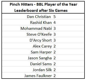 The BBL is back and The Pinch Hitters couldn’t be happier to have cricket on the television each and every night of the summer. Week One has delivered surprise results, match-winning performances with bat and ball and all the action we have become accustomed to from the world’s premier domestic T20 competition. With Six games completed we now take a look at the Hits and Misses from a turbo charged opening week of BBL08.