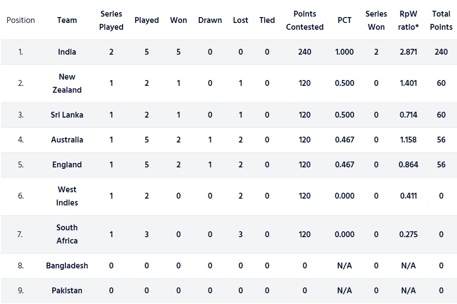 We also should probably put Pakistan and Bangladesh, who haven’t played a test, ahead of West Indies and South Africa, who each lost tests.