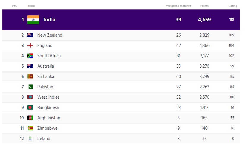 It contradicts the actual ICC test rankings, which, while it still has India in number one spot, and New Zealand in second, has a gap of 10 points, from 119 to 109, and seems somewhat fairer and more accurate.