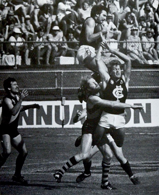 The Tigers had the better of a first-half shootout that produced 24 goals and took a sizeable lead into the half-time break. Sizeable but not comfortable. It wouldn’t have been a true exhibition of early 80’s footy without a Carlton third-quarter burst and Parkin’s men didn’t disappoint. In a withering display, the premiers turned the game on its head with an 11 goal to four term to take a 17-point lead into the final break.